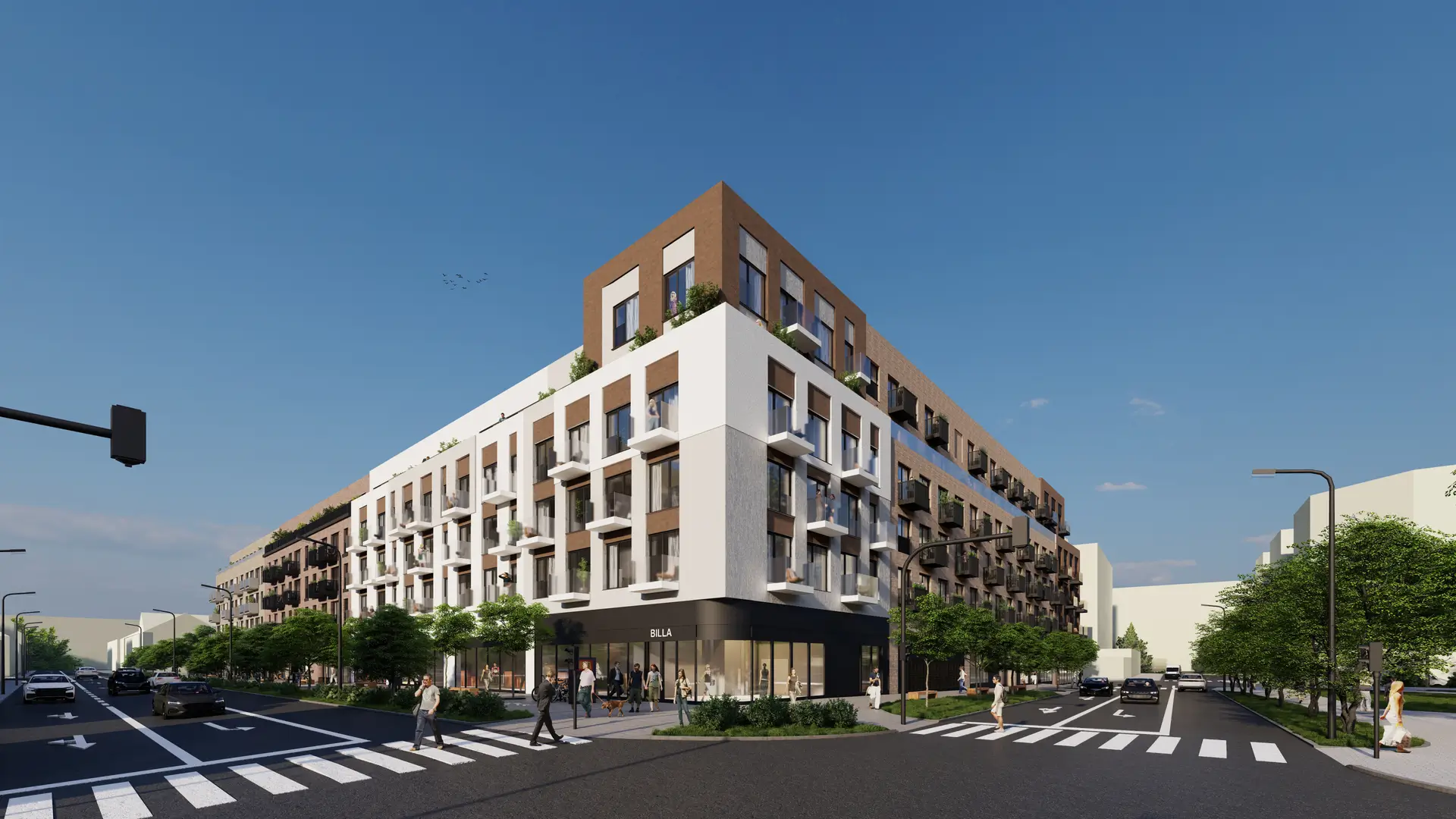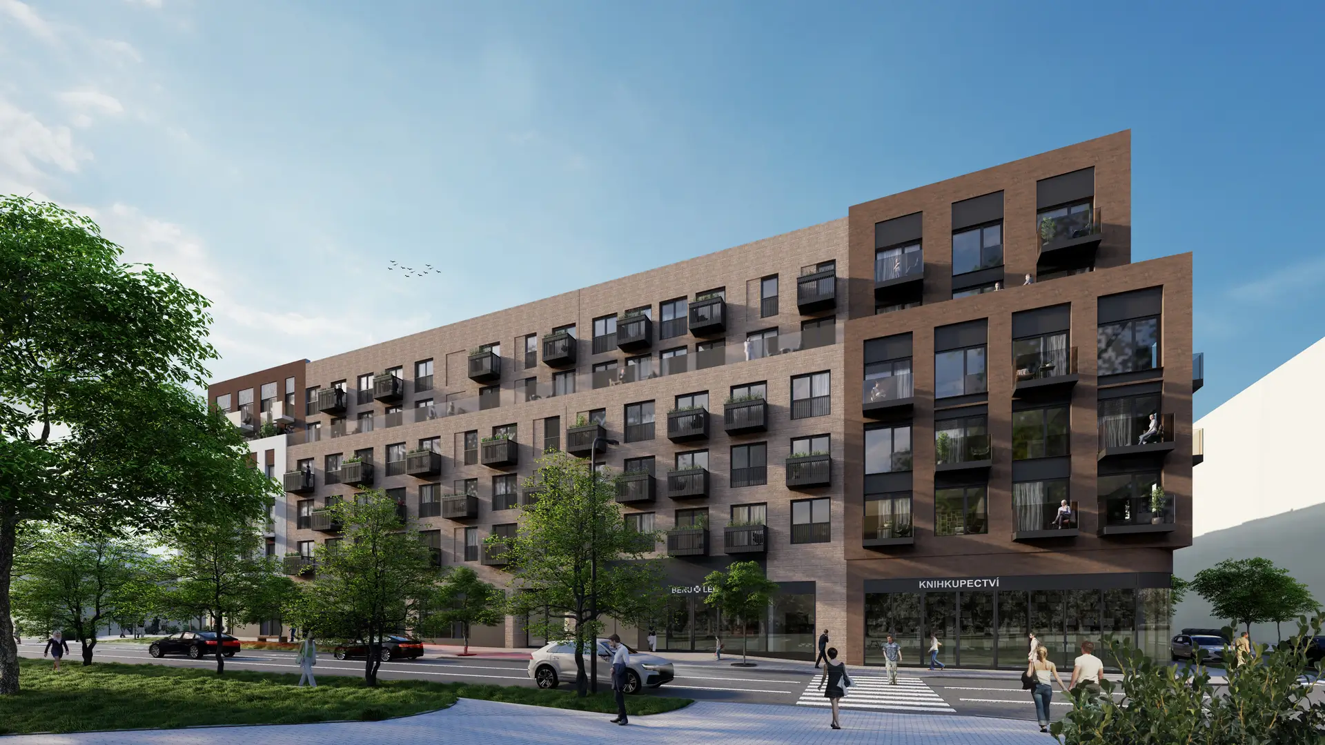 Nový rezidenční projekt s byty, obchody a množstvím zeleně.